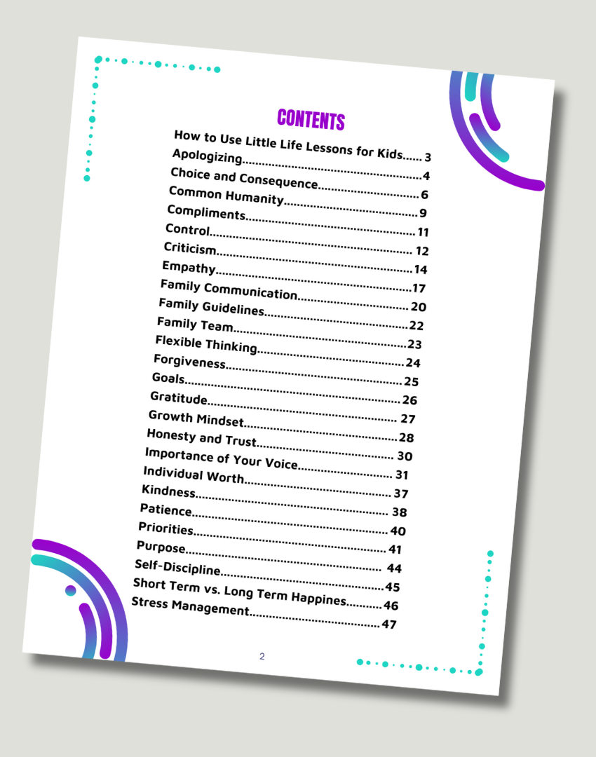 This guide gives you 25 brief activities to do with your kids that teach important values like empathy, growth mindset, and honesty. These little lessons are easy and impactful. The guide is geared towards kids ages 5-11, but older and younger kids could also benefit from many of the activities. Each lesson is intended to take between 10-15 minutes, so you can fit them into your family's schedule.